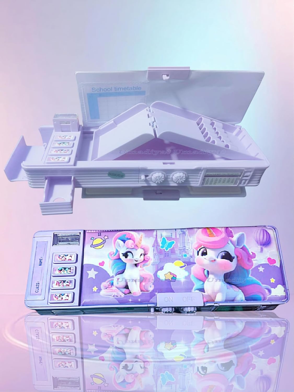 - Stylish Compass Box-Password Lock Double Sided pencil box for kids is made of very high quality material well designed: large capacity pencil case is very spacious and attractive