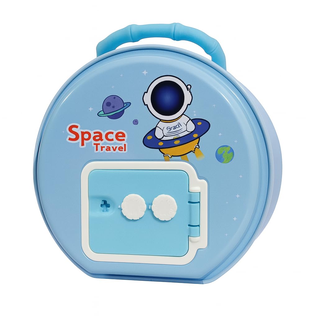Space Travel Astronaut Metal Coin Bank | Combination Lock Money Saving Box for Kids | Saving Money Secure Piggy Bank with Secret Code| SkyBlue Color