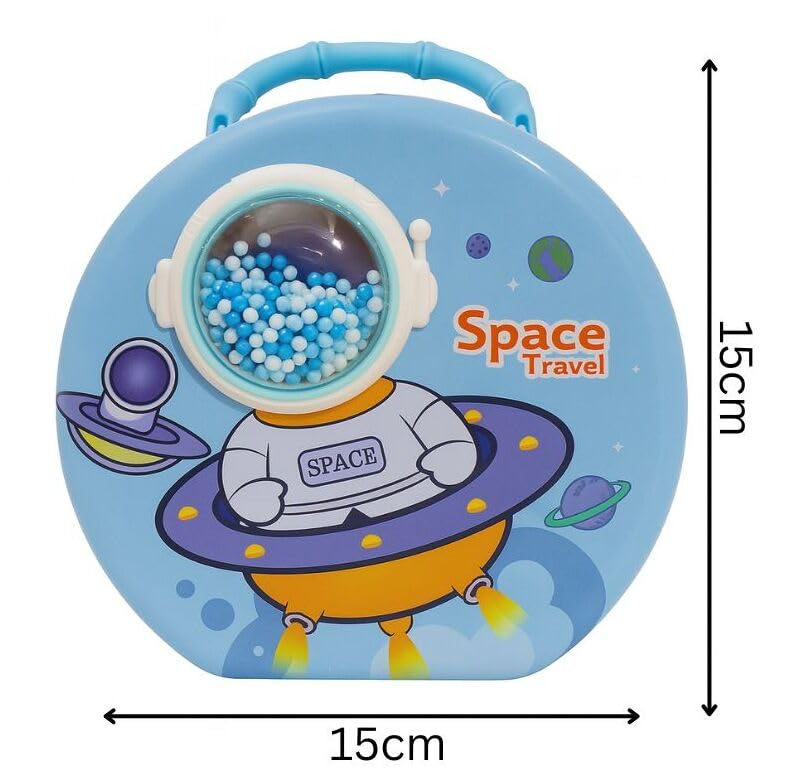 - Cute Space Design: Features an adorable astronaut with a rocket, stars, and colorful beads in the helmet for visual fun.